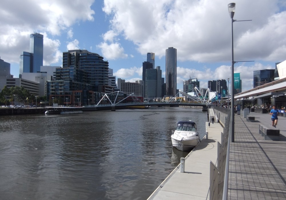 Um 6:20 Uhr morgens ist Melbourne längst erwacht. Die Morgendämmerung an diesem schönen Frühherbsttag kämpft noch gegen die Nacht. Die letzten Nachtschwärmer verlassen das angesagte Kneipenviertel Fitzroy. Die ersten Frühaufsteher sind schon auf dem Weg zur Arbeit. Vom Melbourne Convention and Exhibition Center kommend geselle ich mich zu den Fahrradfahrern und Joggern, die nun die Wege entlang des Yarra Flusses, der die Stadt von Ost nach West durchquert, bevölkern. Es ist genug Platz, doch ich stoße auf beharrlichen Gegenverkehr. Bis ich mich endlich als Geisterjogger entlarve und auf die linke Seite ausweiche. Denn in Australien gilt auch beim Joggen Linksverkehr. Hier an der South Bank ist das Ufer des Yarra gesäumt von Straßencafés und Restaurants, jetzt noch leer, doch später gut besucht.
