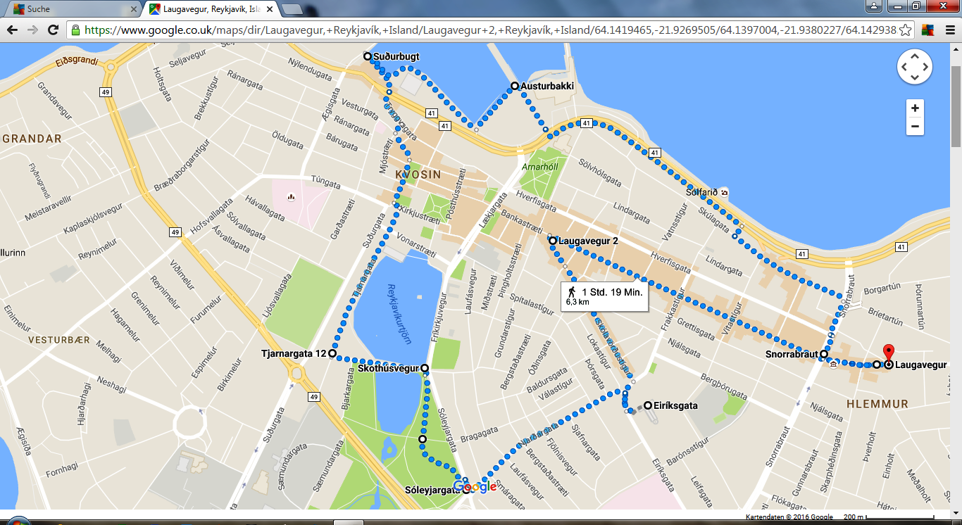 Rundstrecke: Nicholsons Square (Old Town), Marshallstreet, Potterrow und Lothian Street über Fußgängerweg, Bristo Place, Candlemaker Row, Grassmarket, über Treppen und Fußgängerweg hoch zum Edinburgh Castle, Royal Mile über 1,6 km den Hügel talwärts über Castlehill, Lawnmarket, High Street, Canongate, North Bridge bis zum Scottish Parliament, Abstecher zum Palace of Holyroodhouse, dann Fußgängerweg am Parlament rechts vorbei, Queens Drive am Fuße des Holyroodhouse Park, über einen Steig auf die St. Leonhards Lane und über Rankeillor Street, Clifford Park, Buccleuchstreet, über den Moscheeplatz zurück auf den Nicholson Square. 5,2 km, etliche Höhenmeter auf z.T. steilen Auf- und Abstiegen.