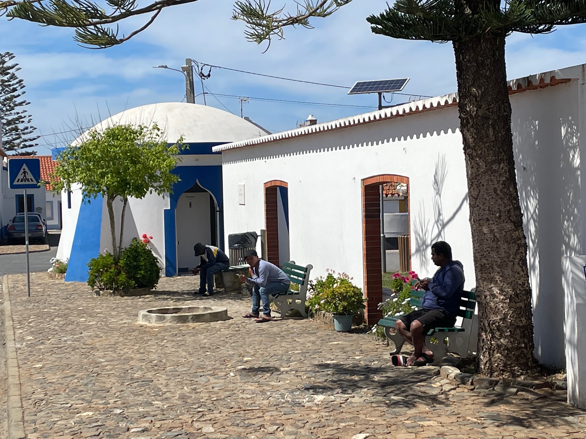 Der Kellner im Fischrestaurant „O Lavrador“ erzählt, dass die Männer in den „estufas“, den Gewächshäusern der Gegend, arbeiten. Ein Blick auf Google Maps bestätigt, dass unweit vom Ort großflächig Tomaten, Obst und Waldbeeren angebaut werden. Nach ein paar weiteren Klicks im Internet wird klar: In Portugals Landwirtschaft arbeiten rund 50.000 Nepalesen und 200.000 Inder, viele davon im Alentejo, wo einheimische Arbeitskräfte fehlen. Hier entsteht eine neue Generation südasiatischer Landarbeiter, denn Portugals Früchteexport nach Nordeuropa – vor allem nach Deutschland – boomt. Der Strom der Zuwanderer in den Alentejo wird also weiter anschwellen. Begünstigt wird dies durch eine liberale portugiesische Einwanderungspolitik, aber auch durch Vermittler, die an den Menschen auf der Suche nach einem besseren Leben mitverdienen. Der freundliche Ram hat seinen „Minimarket“ noch am späten Abend geöffnet. Ich frage den Nepalesen wie es ihm in Portugal gefällt. Er lächelt höflich und sagt, dass er mit seinen beiden Läden ein Auskommen habe. Risiken und Chancen der Arbeitsmigration liegen auch hier im Alentejo eng beieinander. Und ich weiß nun, wem ich die leckeren Heidelbeeren in meinem morgendlichen Müsli zu verdanken habe.